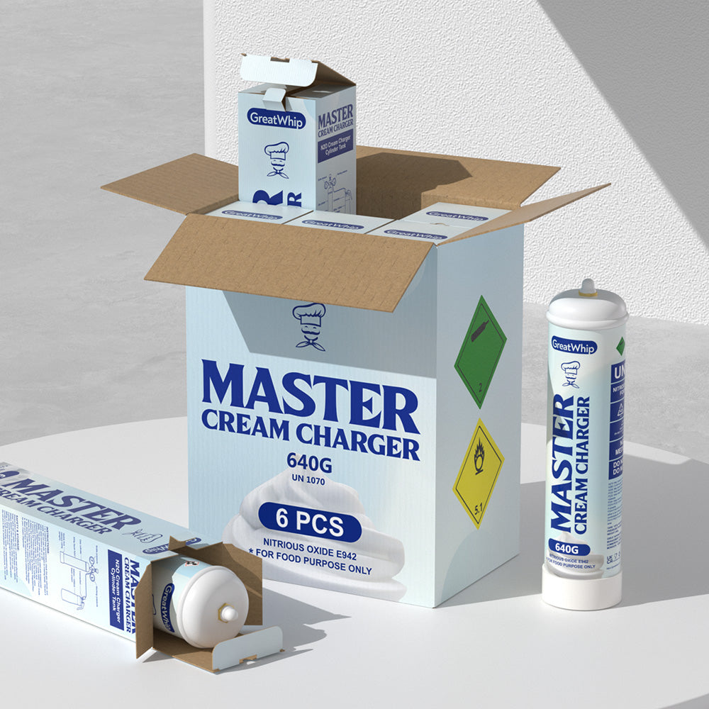 GreatWhip cream charger cylinders are perfect for quickly creating industry-quality whipped cream for food and beverages with minimal waste. Each tank is filled with 640g of food-grade nitrous oxide.